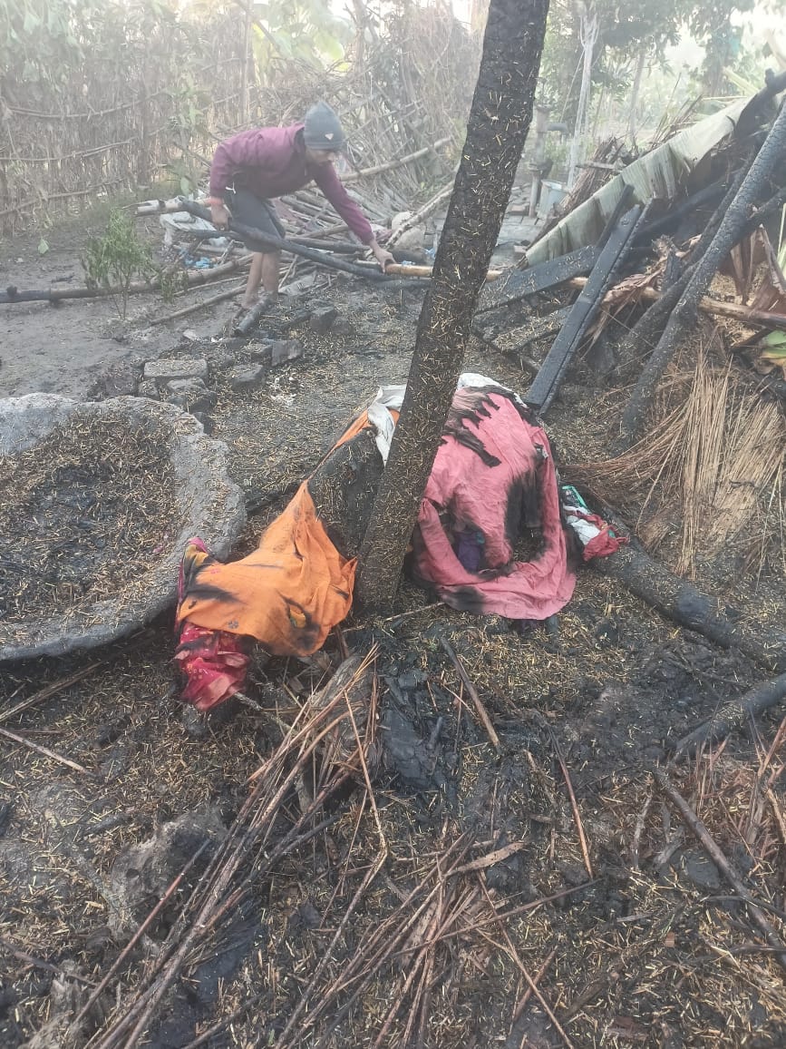 आग में एक घर जलकर राख ,एक गाय समेत करीब दो लाख रुपए की संपत्ति स्वाहा,पीड़ित परिवार को मुआवजे की आस