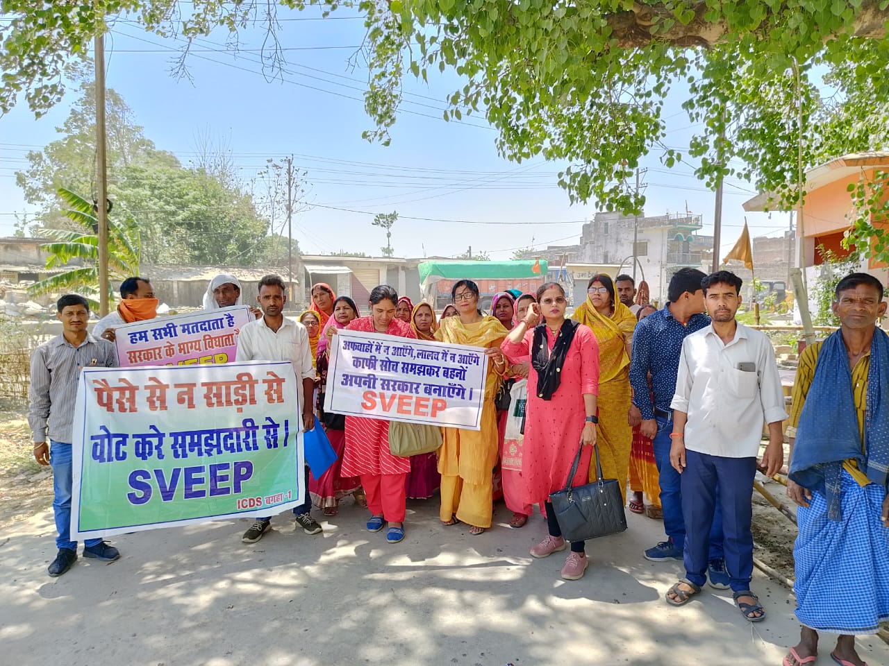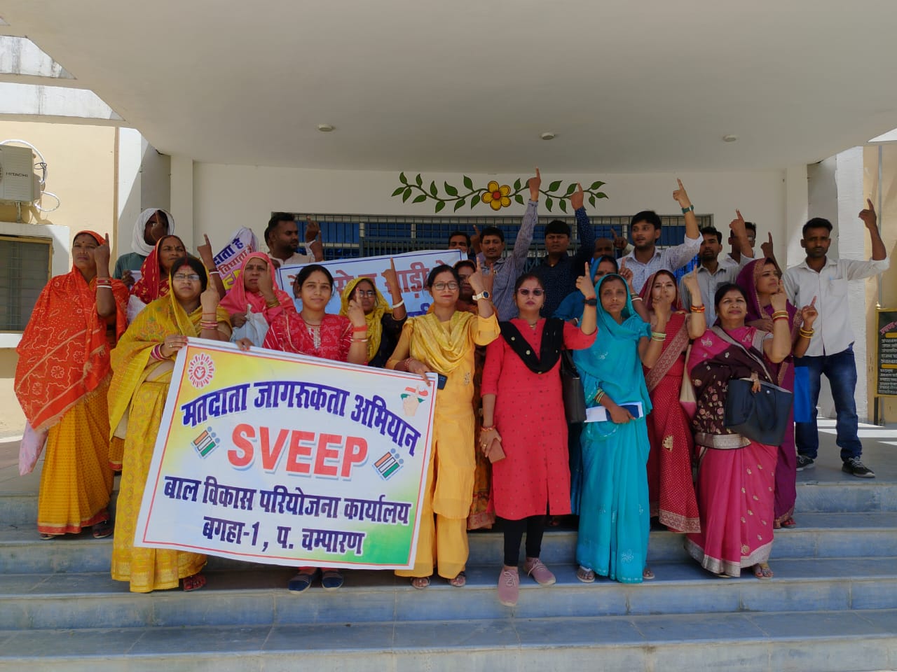 स्वीप कार्यक्रम के तहत आईसीडीएस बगहा एक द्वारा निकाली गई मतदाता जागरूकता रैली।