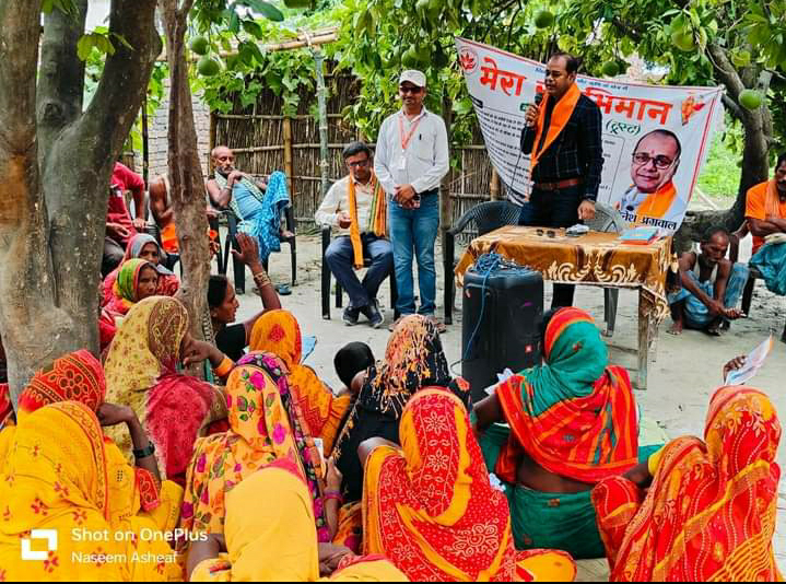 बगहा। बगहा एक प्रखण्ड के पतिलार में शनिवार को मेरा स्वाभिमान संस्था के संस्थापक अध्यक्ष सह वाल्मीकनगर लोकसभा के पूर्व प्रत्याशी दिनेश अग्रवाल ने विभिन्न वार्डो में पहुंचकर ग्रामीण लोगों से जनसंपर्क किया। जनसंपर्क के दौरान दिनेश अग्रवाल से विभिन्न वार्डो में पहुंचने पर स्थानीय लोगों ने गर्मजोशी के साथ स्वागत किया और काफ़ी उत्साह देखा गया। आपको बता दें कि दिनेश अग्रवाल बाहर से बगहा आगमन होते ही उन्होंने लोगों के बीच पहुंचकर सीधा जनसंपर्क किया।जहां समाजसेवी दिनेश अग्रवाल द्वारा पतिलार के विभिन्न वार्डो में चौपाल लगाकर लोगों की समस्याओं को बारी-बारी सुना और उसे त्वरित समाधान कराने का आश्वासन दिया। दिनेश अग्रवाल ने बताया कि मेरे संस्था के पदाधिकारीगण लगातार क्षेत्रों में जनसंपर्क कर रहे हैं और लोगों की समस्याओं को सुन रहे हैं और समस्याओं का समाधान कराया जा रहा हैं साथ मेरा स्वाभिमान संस्था द्वारा चलाई जा जनकल्याणकारी योजनाओं के बारे में जानकारी देते हुए लोगों को लाभान्वित भी किया जा रहें हैं।दिनेश अग्रवाल ने बताया बगहा विधानसभा अंतर्गत पतिलार के वार्ड 1,2,10,14 और वार्ड संख्या 17 में जनसम्पर्क करके जनता के स्थिति परिस्थिति से अवगत होते हुए उनके समस्याओं से निजात दिलाने का आश्वासन दिए साथ ही उन्होने मेरा स्वाभिमान स्वास्थ्य योजना के तहत 1 से 18 वर्ष तक के बच्चों के लिए संजीवनी हेल्थ कार्ड बनाकर 2 से 3 लाख तक की आर्थिक मदद के बारे में विस्तृत जानकारी साझा किए और अन्य जन कल्याणकारी योजनाओं के बारे में भी जानकारी दिए ।मौके पर उमेश अग्रवाल,जितेंद्र गुप्ता,अशोक राव, प्रेम कुमार सहित तमाम ग्रामीण लोग उपस्थित रहें। #ट्रेंडिंग न्यूज़