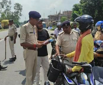 बगहा।बगहा पुलिस जिला के चौतरवा थाना पुलिस ने असमाजिक तत्वों, शराब धंधेबाजों एवं चोरी की घटना पर लगाम लगाने के लिए सोमवार को नेशनल हाईवे मुख्य मार्ग के थाना के समीप घंटों वाहन जांच अभियान चला कर लगभग 10 हजार 500 रुपये की राजस्व वसुली की है। पुलिस इन्स्पेक्टर सह चौतरवा थानाध्यक्ष संजीत कुमार ने बताया कि पुलिस अधीक्षक बगहा के आदेश के आलोक में नियमित व सुचारू रुप से वाहन जांच अभियान चलाई जा रही है। उन्होंने बताया कि सब – इन्स्पेक्टर संजय कुमार के नेतृत्व में एन एच 727 मुख्य मार्ग के थाना के समीप घंटों वाहन जांच अभियान चला कर 10 हजार 500 हजार रुपये की राजस्व वसुली सुबह 11 बजे तक की गई। उन्होंने बताया कि वाहन जांच के दौरान असमाजिक तत्वों पर पैनी नजर रखते हुए शराब धंधेबाजों के विरुद्ध लगाने के लिए लगातार वाहन जांच अभियान चलाई जा रही है। सब – इन्स्पेक्टर संजय कुमार ने बताया कि नियमित वाहन जांच अभियान चलाने से राजस्व वसुली के साथ ही बाईक चोरी की घटना पर लगाम लगाई जा सकती है। उन्होंने बताया कि वाहन जांच के क्रम में बाईक की कागजात, लाईसेंस, हेलमेट इन्शुरेंश समेत विभिन्न प्रकार के कागजातों की जांच की गई। बाईक चालकों के पास संबंधित कागजात नहीं रहने पर जुर्माना वसुल की गई। चौतरवा पुलिस की इस कार्रवाई से वाहन चालकों में हडकंप मच गया है।