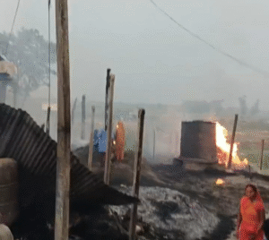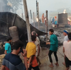 तेज आंधी के बीच अचानक लगी भीषण आग ने बसवरिया पंचायत के पड़री गांव में मचाई तबाही,सैकड़ों घर जलकर हुआ राख।