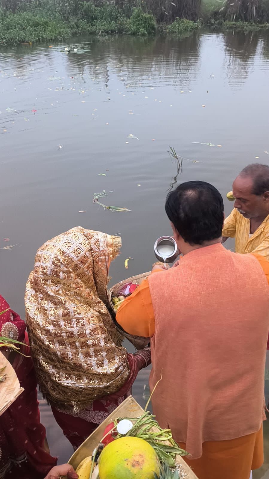 बाबु धाम ट्रस्ट की अध्यक्षा मंजूबाला पाठक एवं संस्थापक ए.पी. पाठक ने अपने मातृभूमि चंपारण में मनाया महापर्व छठ।