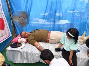 बिहार डेस्क,बगहा।बिहार पुलिस सप्ताह दिवस-2026 के अवसर पर शुक्रवार को पुलिस अधीक्षक,बगहा रामानंद कौशल के निर्देशन में पुलिस केन्द्र बगहा मे रक्तदान शिविर का आयोजन किया गया।इस अवसर पर पुलिस पदाधिकारियों एवं कर्मियों ने उत्साहपूर्ण भाग लेते हुए स्वैच्छिक रक्तदान किया। एसपी रामानंद कौशल ने बताया कि उक्त कार्यक्रम का उद्देश्य समाज के प्रति पुलिस की संवेदशीलता एवं मानवीय दायित्वों के निर्वहन प्रदर्शित करना तथा आमजना में रक्तदान के प्रति जागरूकता फैलाना था।रक्तदान शिविर में उपस्थित चिकित्कीय टीम द्वारा सभी आवश्यक स्वास्थ्य मानकों का पालन करते हुए रक्त संग्रह किया गया। एसपी ने कहा कि रक्तदान एक महादान हैं, जिससे जरूरतमंद लोगों का जीवन बचाया जा सकता हैं, और पुलिस बल सदैव समाजहित में तत्पर है।मौके पर बगहा एसडीपीओ कुमार देवेंद्र,अंचल पुलिस निरीक्षक बगहा संजय पाठक,मुख्यालय के पुलिस पदाधिकारी सहित अन्य पुलिस पदाधिकारी और पुलिसकर्मी एवं स्वास्थ्य विभाग की टीम उपस्थित थे।