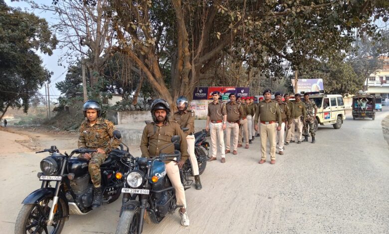 बगहा पुलिस ने होली पर्व के अवसर पर विधि-व्यवस्था संधारण और शांति व्यवस्था बनाए रखने के लिए सघन पैदल फ्लैग मार्च निकाला।