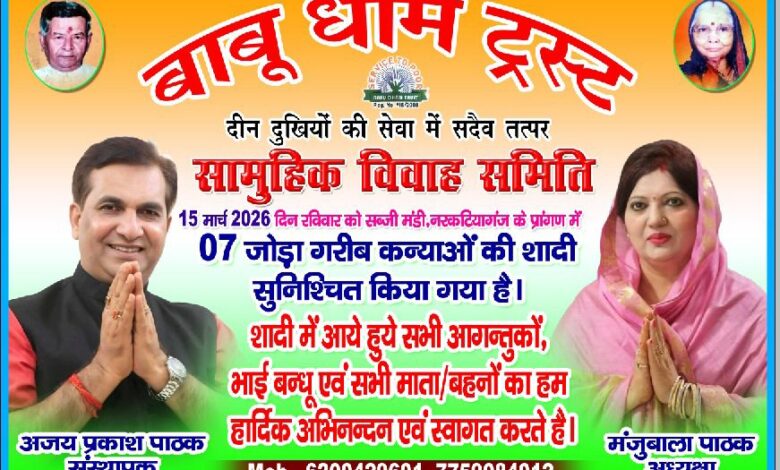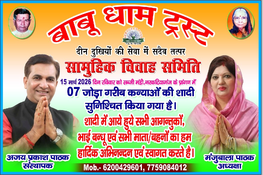 बेतिया/नरकटियागंज। पूर्व वरिष्ठ नौकरशाह एवं बाबु धाम ट्रस्ट के संस्थापक एपी पाठक ने नरकटियागंज में गरीब कन्याओं की सामूहिक शादी में बाबु धाम ट्रस्ट के कार्यकर्ताओं के माध्यम से आर्थिक सहयोग के साथ-साथ श्रमदान कर भी महत्वपूर्ण भूमिका निभाई, जिससे कई जरूरतमंद बेटियों का विवाह सम्मानपूर्वक संपन्न हो सका।एपी पाठक हमेशा से समाज के गरीब, असहाय और जरूरतमंद लोगों के साथ खड़े रहने के लिए जाने जाते हैं। बाबु धाम ट्रस्ट के माध्यम से वे निरंतर सामाजिक और सार्वजनिक कार्यों में सक्रिय रहते हैं। शिक्षा,स्वास्थ्य, गरीबों की सहायता,वृद्धों की सेवा तथा युवाओं को सकारात्मक दिशा देने जैसे अनेक जनकल्याणकारी कार्य ट्रस्ट के माध्यम से किए जाते हैं।विशेष रूप से गरीब बेटियों के विवाह को लेकर एपी पाठक का दृष्टिकोण बेहद संवेदनशील रहा है। वाल्मीकिनगर लोकसभा क्षेत्र के विभिन्न विधानसभा क्षेत्रों में वे समय-समय पर बाबु धाम ट्रस्ट के माध्यम से गरीब कन्याओं के विवाह में सहयोग करते हैं। कई स्थानों पर ट्रस्ट के सहयोग से बेटियों का विवाह संपन्न कराया जाता है, वहीं अन्य सामाजिक और सहयोगी संगठनों के साथ मिलकर आर्थिक सहायता भी उपलब्ध कराई जाती है, ताकि किसी भी गरीब परिवार की बेटी की शादी केवल आर्थिक अभाव के कारण बाधित न हो।नरकटियागंज में सामूहिक विवाह समिति द्वारा आयोजित इस कार्यक्रम में भी बाबु धाम ट्रस्ट की ओर से सहयोग देकर कई परिवारों के चेहरों पर खुशी लाने का प्रयास किया गया। एपी पाठक का मानना है कि बेटी का सम्मान और उसका सुखद भविष्य समाज की सामूहिक जिम्मेदारी है, और जब समाज मिलकर किसी बेटी का घर बसाता है, तो वह केवल एक परिवार नहीं बल्कि पूरे समाज को खुशियों से भर देता है यही भावना बाबु धाम ट्रस्ट के कार्यों की प्रेरणा है जहाँ सेवा, सहयोग और मानवीय संवेदना के साथ समाज के हर वर्ग तक मदद पहुँचाने का निरंतर प्रयास किया जाता है।