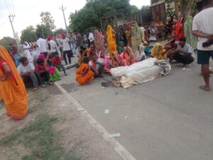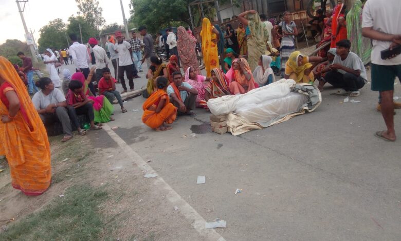 शव रखकर परिजनों व ग्रामीणों ने किया प्रदर्शन।